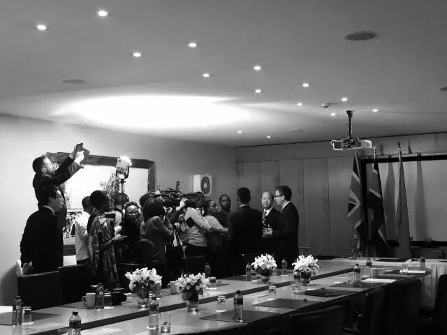 英国商会和老干部协会签署合作备忘,大使(图中憨厚的谢顶男子)和英国高专接受媒体采访。 5