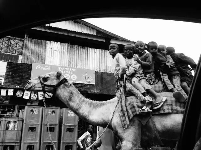 摄影:Wu Di Kibera在骑骆驼的小朋友们。
